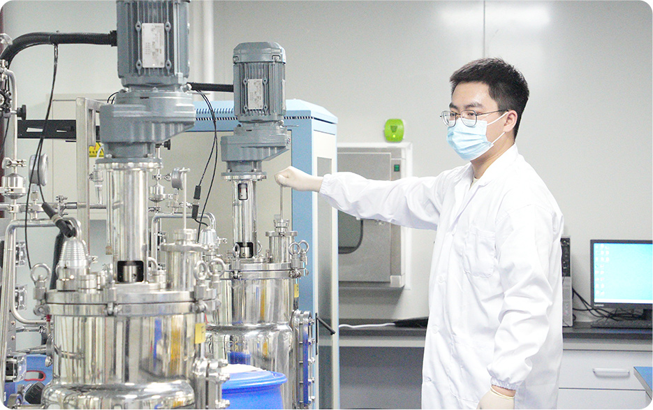 由發酵實驗室、檢測實驗室組成,配置有5L-50L-100L-1000L的不同體積的發酵罐,以及多種精密檢測儀器,進行從0-1-10的發酵工藝放大,為工業化生產蘡定基礎條件。